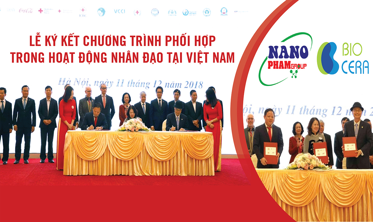 Lễ ký kết chương trình phối hợp trong hoạt động Nhân đạo tại Việt Nam giữa Nano Pham Group - Trung ương Hội Chữ thập đỏ Việt Nam và Biocera (Hàn Quốc)