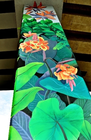 Một góc bức tranh tường với những cây hoa nhiệt đới đẹp mắt.