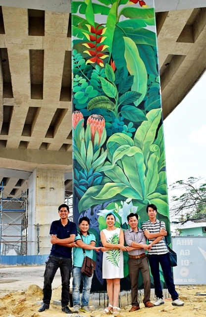 Trong tháng 3 vừa qua, họa sĩ Thu Thủy và bốn họa sĩ Công ty Nghệ thuật Tân Hà Nội đã hoàn thành bức tranh tường đầu tiên trang trí sân bay Đà Nẵng với ý tưởng mô tả phóng to các loài cây và hoa nhiệt đới phổ biến ở Việt Nam nhằm hướng tới chào đón sự kiện Tuần lễ cấp cao APEC 2017 sẽ diễn ra tại Đà Nẵng vào tháng 11 năm nay. Bốn mặt của cột bê tông cao 7,4m đường kính 6,4m đã trở thành một tác phẩm nghệ thuật với những hình vẽ cây và hoa thật mềm mại, tươi sáng và sống động: hoa chuối pháo, bạch ngọc châm, hoa thiên điểu, sen đá, hoa dong riềng, khoai nước,..