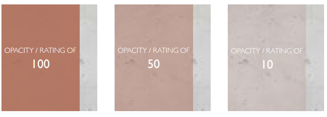 Each shade is available in 3 different opacities (opaque, semiopaque and slightly opaque).