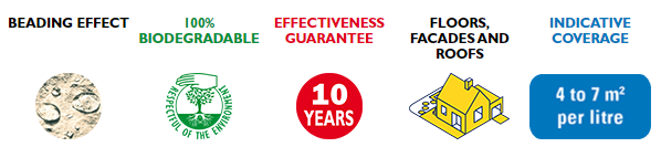 • Prevents chewing-gum from sticking, limits dirt due to pollution from building up again. Limits moss and lichen growth.
