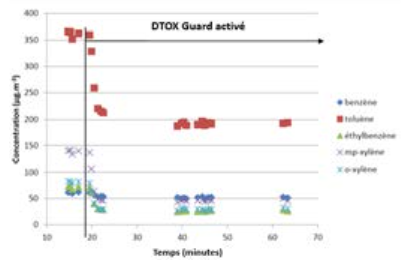 • DToxGuard® Int is efficient on the main pollutants present in indoor air: VOCs such as BTEX and formaldehydes and nitrogen oxides (NOx).