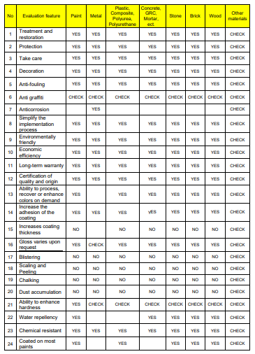 Treatment, restoration, care, protection, decoration and antifouling, anti-graffiti, anti-corrosion, ect comprehensive materials