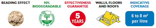 Used outside on porous floors, façades and roofs. Ideal for all types of material: natural or reconstituted stone, concrete, plaster, brick, terracotta, slate, cement, autoblocking paving stones etc.