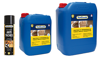 TexGuard® penetrates the fibre deeply to the weft, and can therefore waterproof and protect all fabrics, carpets and rugs against penetration by water, oil and stains of all kinds (fruit, wine, fizzy drinks, coffee, tea, ice, etc.).