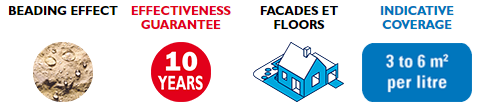 • Protects against water, humidity and frost and thus limits development of efflorescence, moss and lichens.