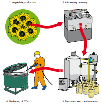 Mix of 100% organic-based raw material of which 91% coming from second generation recycled oil.
